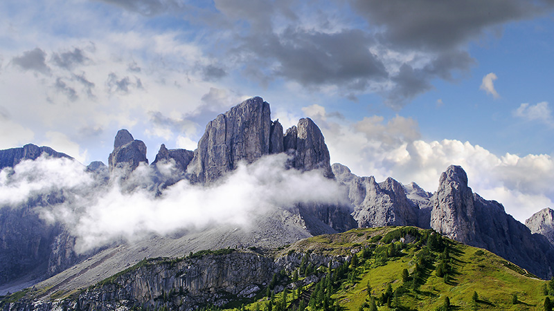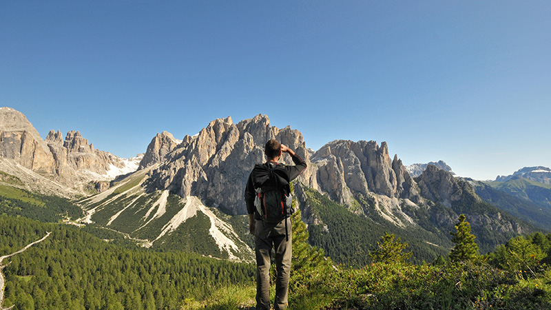 Vandreturen på Pordoipasset (2240 moh) over Canazei i Val di Fassa begynner med en tur i gondolbanen opp til det 2947 meter høye Sass Pordoi, ved den sørvestlige grensen i Sella-fjellets område. Herfra går det en sti opp til Pordoi-fjellpasset, og her begynner den alpine turløypen No 627 som fører til Rifugio Boè, som delvis følger Alta Via delle Dolomiti – “Dolomittenenes highway", hvor vi går i et månelignende landskap. Løype No 638 fortsetter i retning Piz Boè-fjellet med sitt kors på toppen, så videre til den lille trehytten Capanna Fassa som ligger på 3.156 meters høyde. Herfra er det en vakker 360 graders utsikt over Dolomittenes fjelltopper som Fanes, Marmolada og Sassolungo.